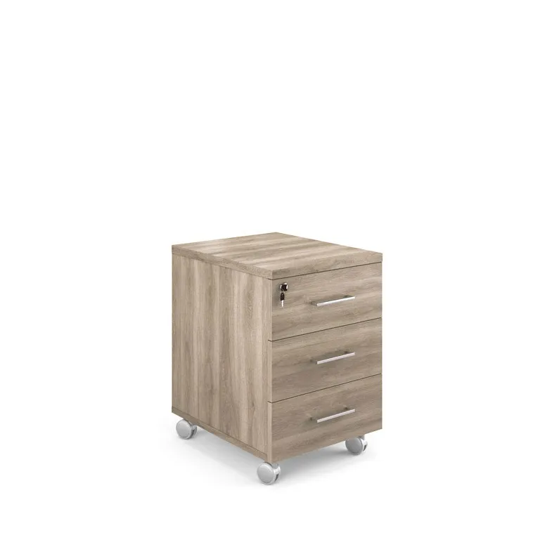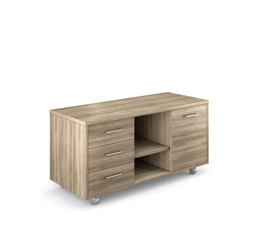 Тумба и подкатная приставка: на выдвижных ящиках установлен механизм плавного закрывания. Распашная дверь подкатной приставка снабжена механизмом плавного закрывания. Отделение с тремя выдвижными ящиками всегда находится слева, отделение с распашной дверью – справа. Лотком для канцтоваров мобильная тумба НЕ комплектуется.