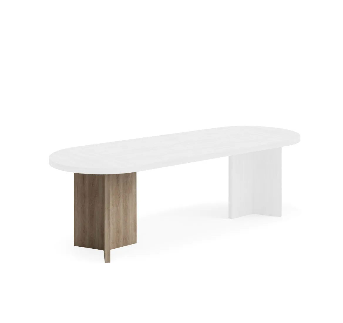 Письменный стол Terra сконструирован таким образом, что положение опор стола и опорной тумбы может быть определено во время сборки стола, причем варьироваться может не только правое/левое расположение, но и глубина установки опорной тумбы.
