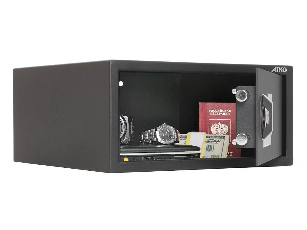 Сейфы для отелей и гостиниц — компактные модели 20-30 см высотой, помещающиеся на полке платяного шкафа или прикроватной тумбы. Они занимают минимум места, но достаточно вместительны для хранения личных вещей и небольших сумм наличных.