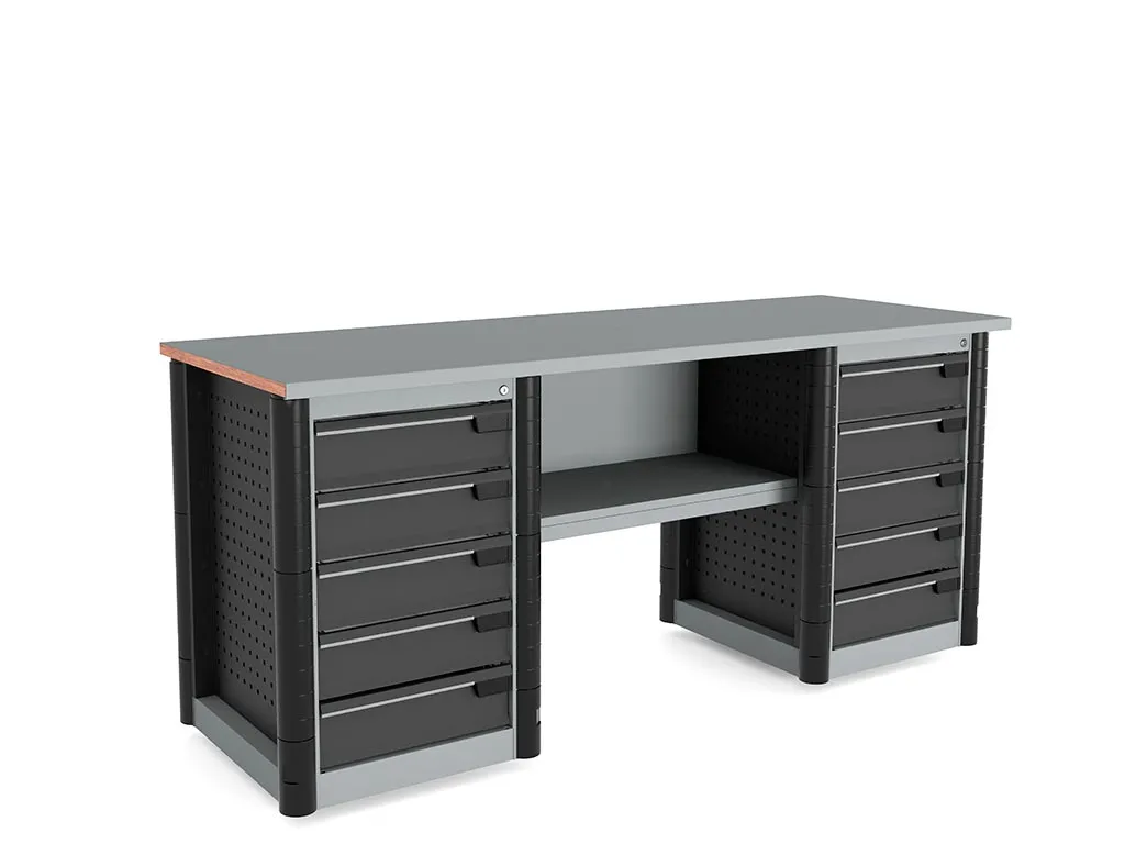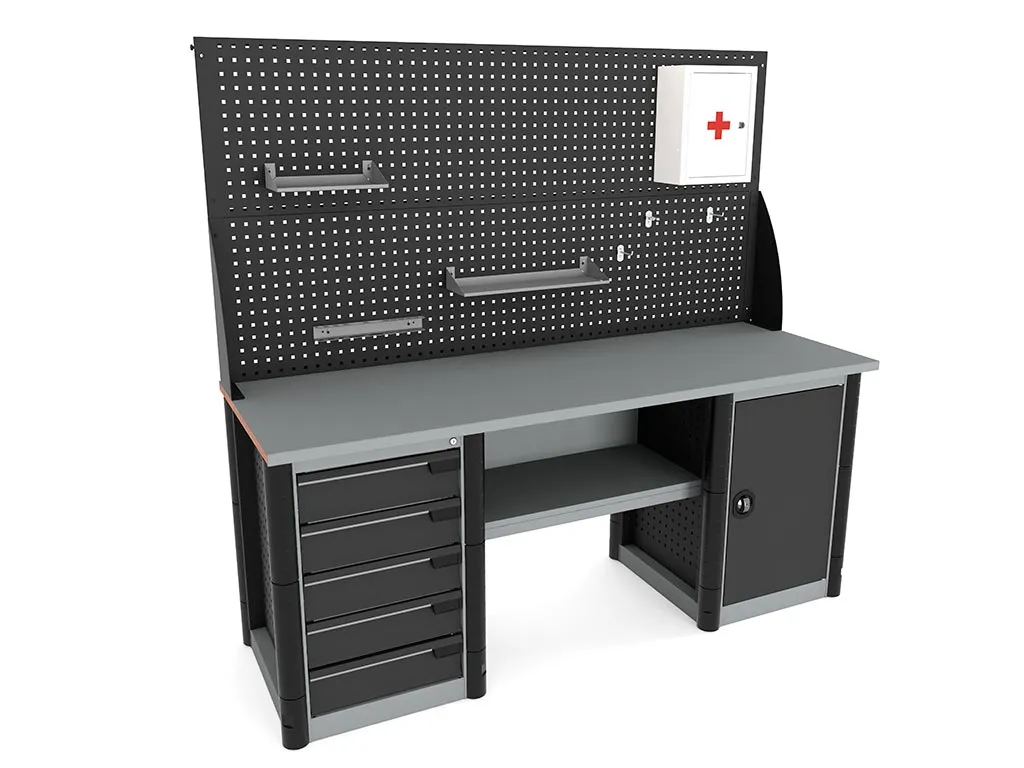 - Быстрая сборка. Время на сборку верстака в максимальной комплектации – 55-70 минут (2 сборщика)